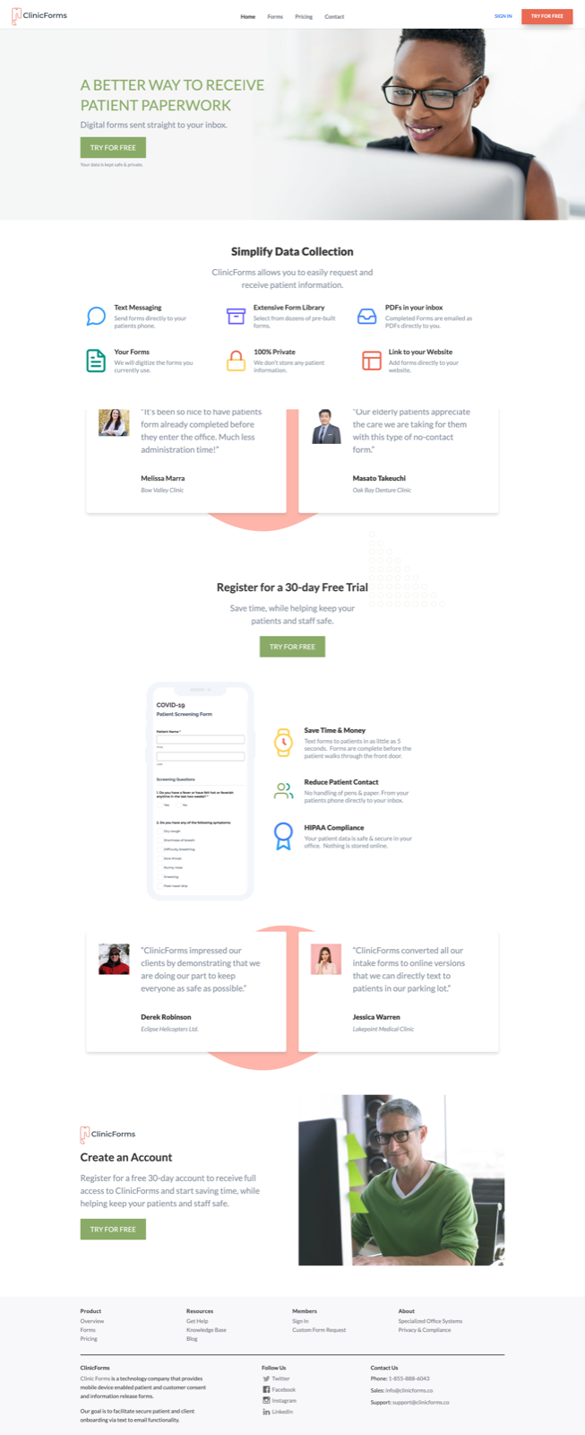 ClinicForms.co began as a fast-response digital solution to a critical problem: enabling health clinics to pre-screen patients for COVID-19 before they entered the building. Created during the height of the pandemic, the platform helped clinics maintain compliance, reduce risk, and manage foot traffic more safely and efficiently.